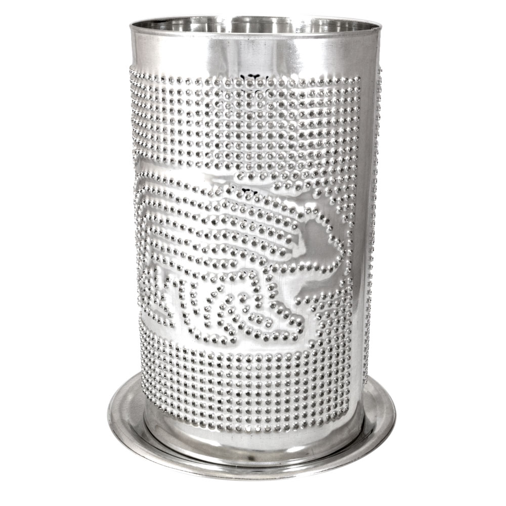 - Pierced shade with stamped base made from tin-plated steel.