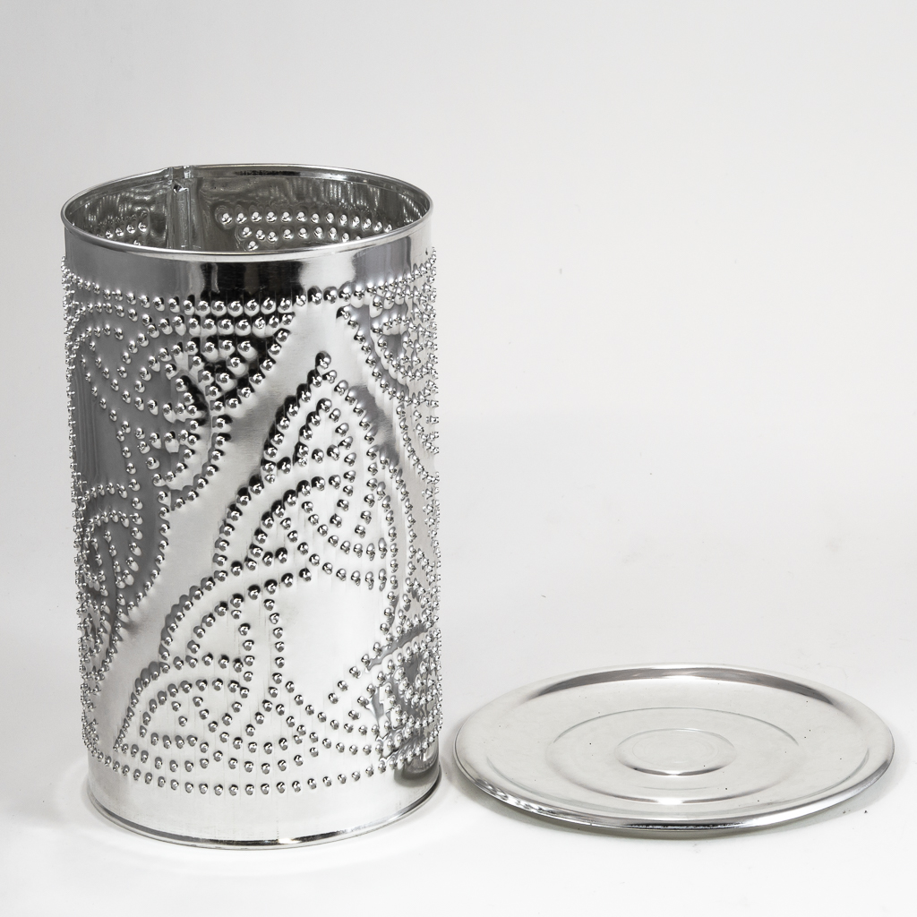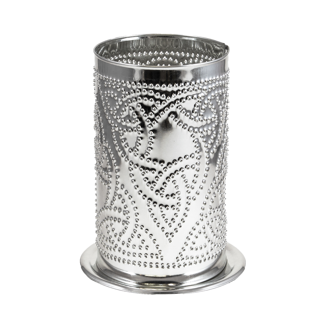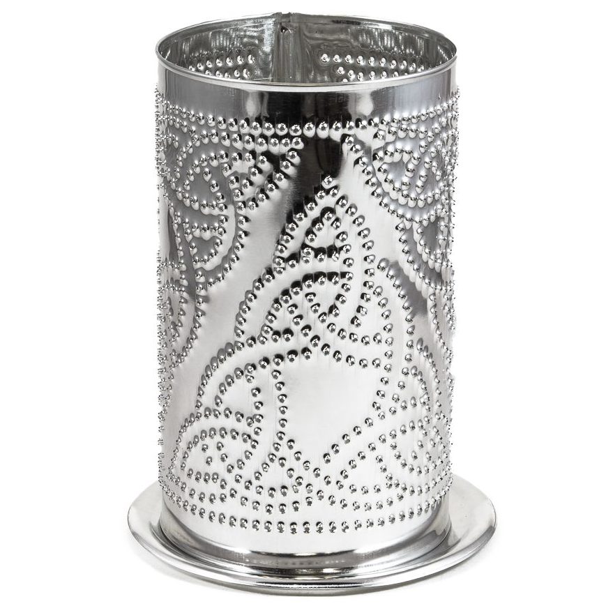 - Pierced shade with stamped base made from tin-plated steel.