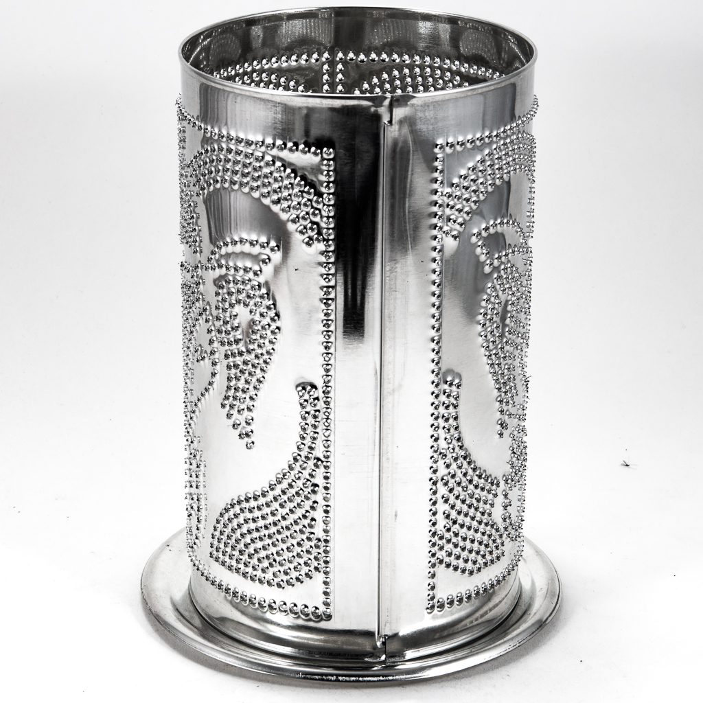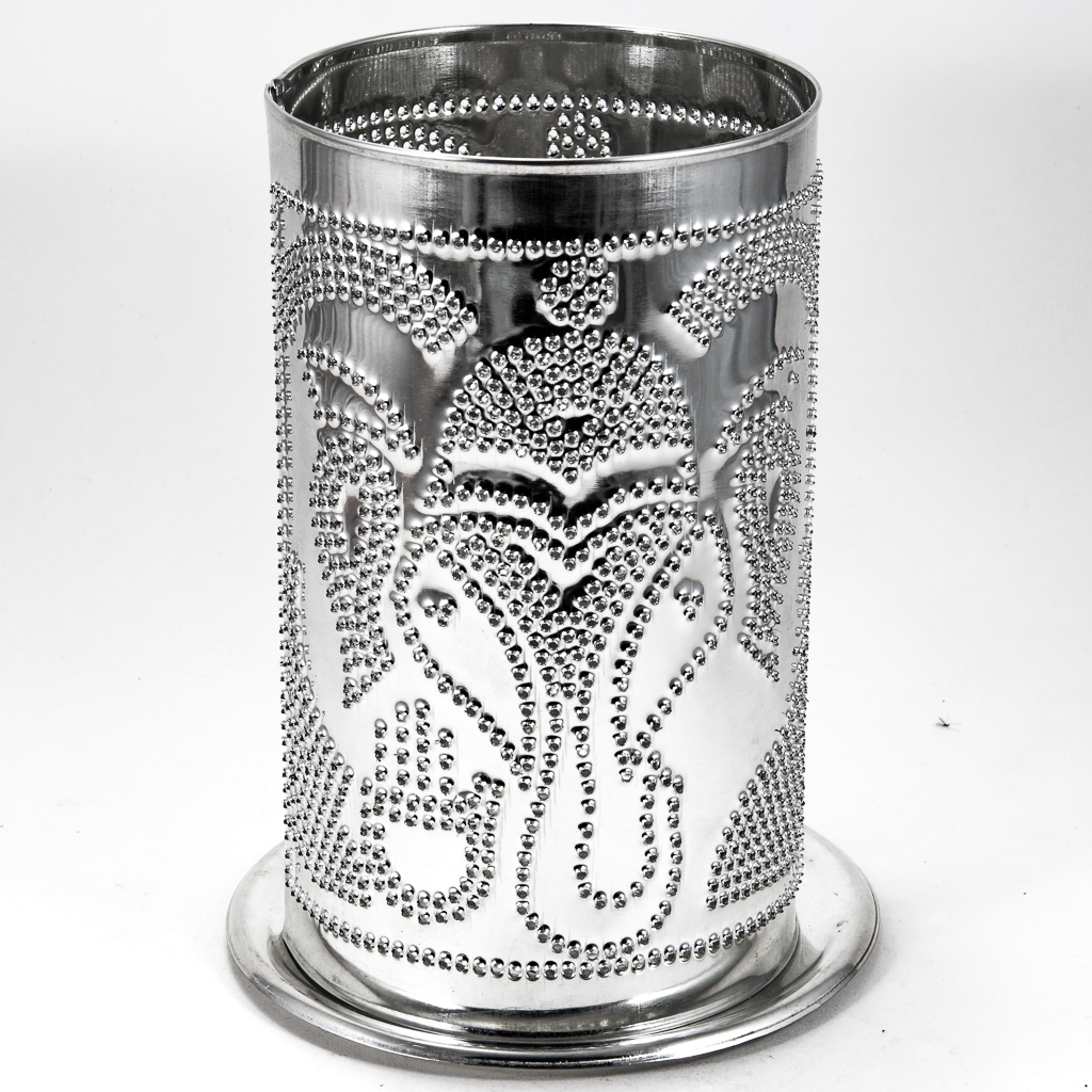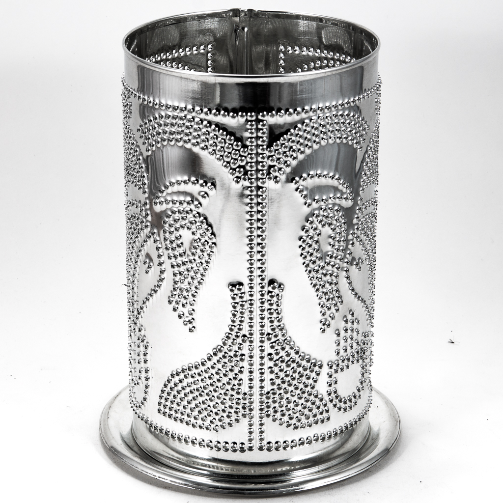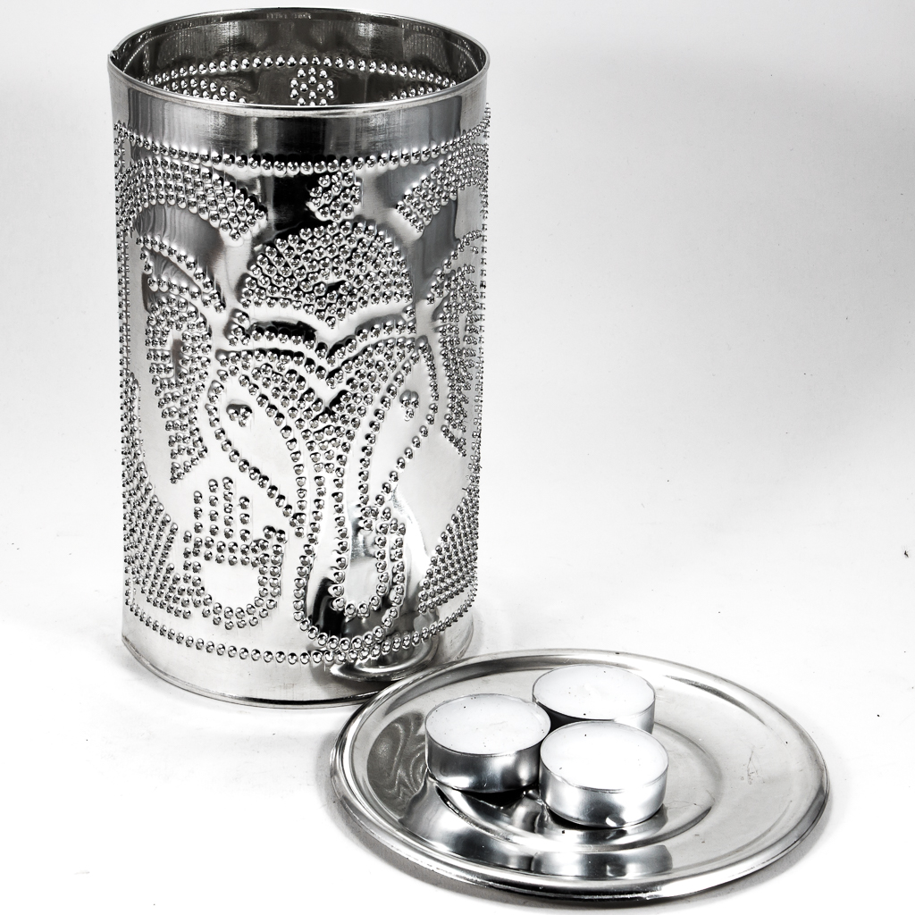 - The pattern has more than 2145 piercings. Height 7.75 inches. Shade 4.375 inches diameter. Plate 5.75 inches diameter.