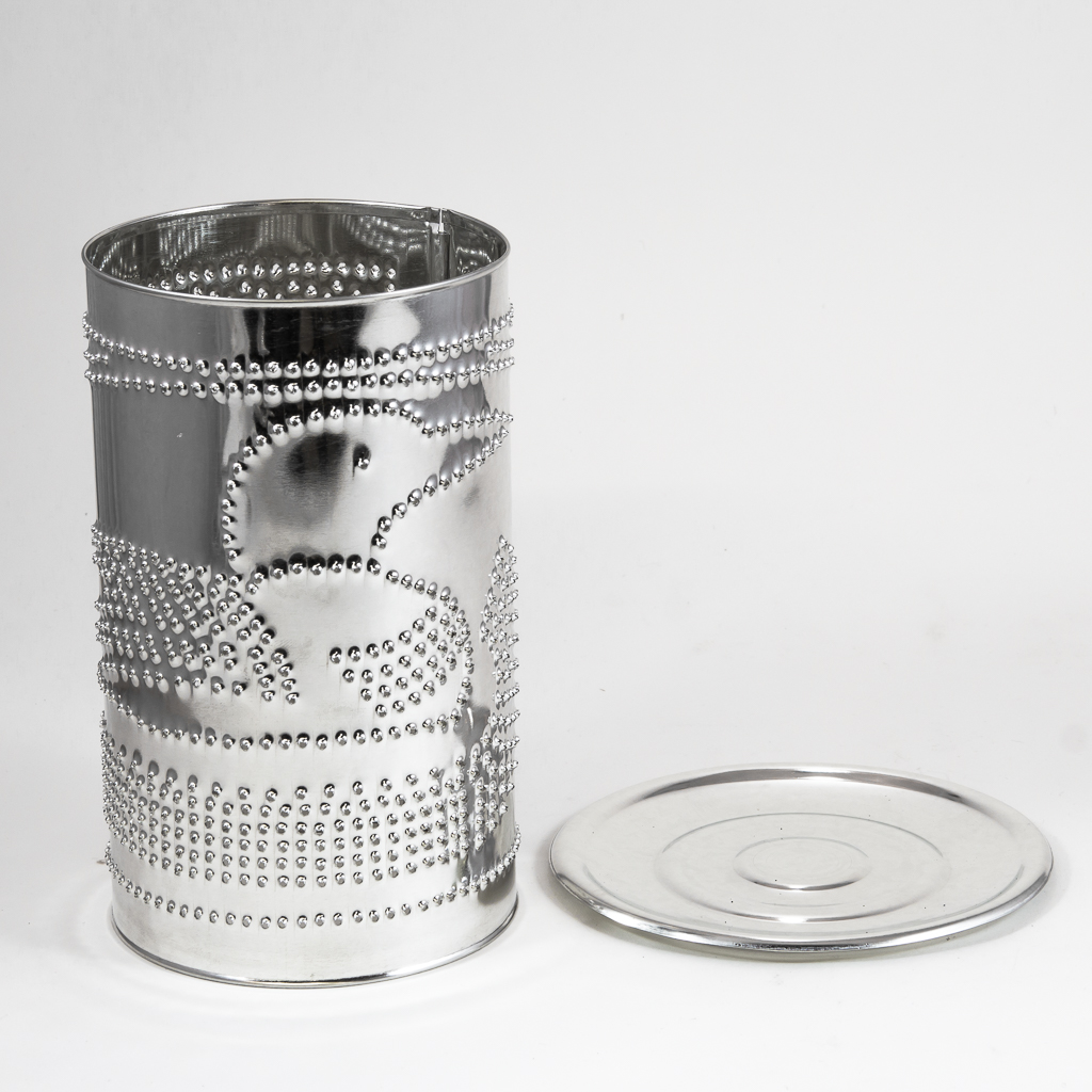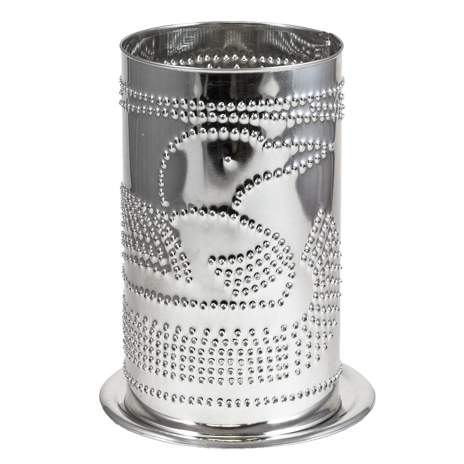 - Pierced shade with stamped base made from tin-plated steel.