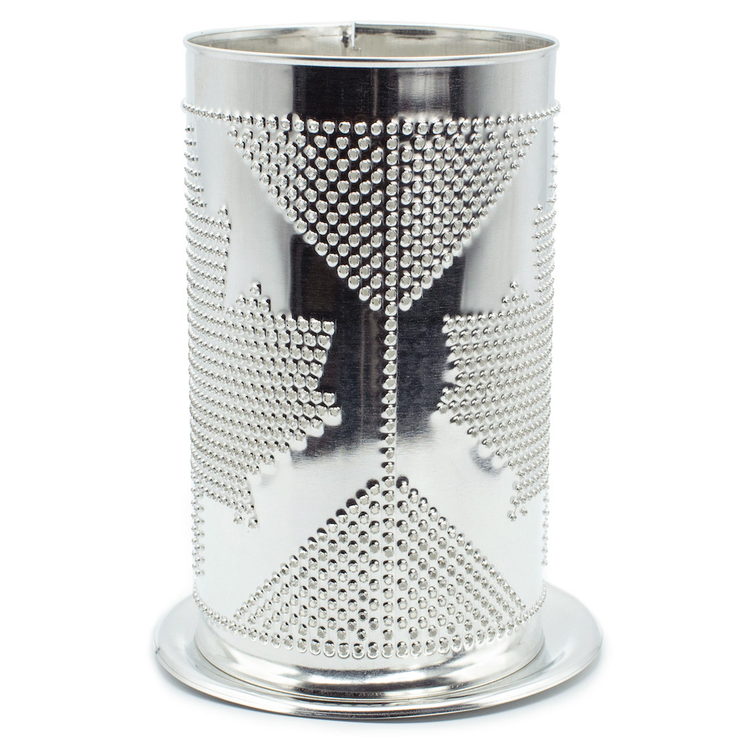 - Pierced shade with stamped base made from tin-plated steel.