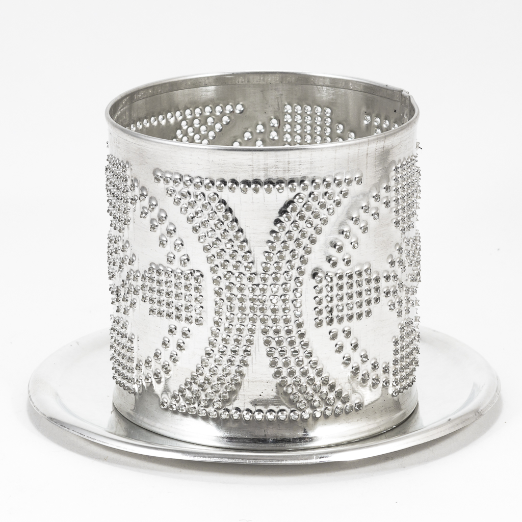 - Pierced shade with stamped base made from tin-plated steel.